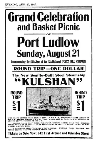 Kulshan was a steamship which operated on Puget Sound from 1910 until 1929. When built, Kulshan was one of a newer type of inland steamships constructed entirely of steel, and was then considered one of the finest vessels ever to operate on Puget Sound.