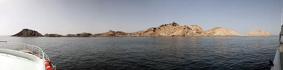 In antiquity the islands were called the Zenobii or Zenobiou Islands (Greek: Ζηνοβίου νησία; Latin: Zenobii Insulae) or Doliche (Greek: Δολίχη). The islands were mentioned by several early writers including Ptolemy (vi. 7. § 47) who numbered them as seven small islands lying in Khuriya Muriya Bay (Greek: Σαχαλίτης κόλπος; Latin: Sinus Sachalites), towards the entrance of the "Persian Gulf" (most likely the modern Gulf of Aden).[1] The Periplus of the Erythraean Sea, a periplus dated to between AD 40 and 70, thus mentioned the Khuriya Muriya Islands, then called Isles of Zenobios:
