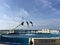 Near the aquarium is the Dolphin Show Stadium, called the Okichan Theater, where viewers can touch the animals and watch the show's performance for free.[65] There is also a dolphin contact facility called Dolphin Lagoon, which houses several species of dolphin.[66][67] The Indo-Pacific bottlenose dolphin named Okichan has been owned since the opening of the Okinawa Ocean Expo Aquarium and has been bred for 48 years as of 2024.[19]