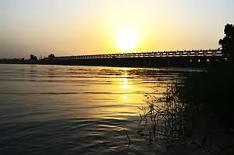 The Kut Barrage was constructed in the city in the 1930s to provide irrigation water for the surrounding area. The barrage supports a road and includes a lock for boats passing up and down the Tigris. Its purpose is to maintain a sufficiently high water level in the Tigris to provide water for the Gharraf irrigation canal.