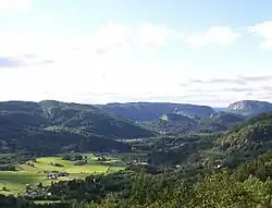 Kvinesdal is an elongated mountain-to-coast municipality, reaching saltwater at the head of the Fedafjorden, which provides access to the North Sea in the south. Further north, the landscape is cut by narrow valleys with scattered small villages. There are also abandoned mines at Knaben, a popular ski resort. Because Kvinesdal resembles the geography of the nation as a whole, it is often referred to as "Little Norway".[4]
