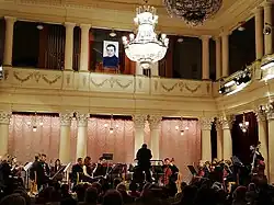 The Kyiv Camerata (in Ukrainian: Київська камерата, romanizedKyivska Camerata) is a musical group in Kyiv,[1] fully titled National Ensemble of soloists Kyivska Camerata. It is a leading Ukrainian performer of chamber music of different styles. The ensemble's repertoire is remarkably diverse, ranging from works of Vivaldi, Bach, Haydn, Mozart, Wagner, Grieg, Chaykovsky, Stravinsky, Sheinberg to the best samples of world avant-garde classics of the second half of the 20th century.[2] Notably, the ensemble focuses on the popularization of modern Ukrainian music and the global representation of Ukrainian composers.