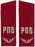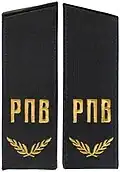 The general uniform of the battalion was unveiled on 24 August 2016 based on British and Polish military styles such as a variant of the Polish Rogatywka (the previous one was a peaked cap). The actual uniform jacket was changed from black to brown.[11] It also incorporates details from the uniforms worn by the Ukrainian People's Army, including a cap which features an insignia of a Ukrainian Cossack grasping a cross.[12] Although mainly designed for the Ukrainian Army, the other services represented in the based their new uniforms off of the army's update. All of this was partly done in response to the ongoing Russian military intervention and later invasion of Ukraine as well as decommunization and derussification in Ukraine to distance the battalion from its ceremonial counterparts in the Soviet Army/Russian Army.[13][14]