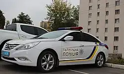 | Hyundai Sonata | South Korea | Patrol car | 110 | Highway patrol car. Former taxis operated under the SkyTaxi brand by Kyiv's Boryspil International Airport. Owned by the state and transferred to the police as surplus to SkyTaxi's requirements. |