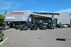 Kymco has its U.S. subsidiary KYMCO USA headquartered in Spartanburg, South Carolina, United States and sells its vehicles and products via 400 franchised dealerships located throughout the country. For the U.S. market, Kymco offers 10 scooters, five side by sides, 12 ATVs and a small displacement motorcycle in its line of products. Kymco was the official Scooter and ATV for the NHRA[7] and with Gray Motorsports primary sponsor of the 2014 NHRA Mello Yello Drag Racing Series.[8]