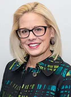 Sinema was sworn in as a member of the U.S. Senate on January 3, 2019.[117] During the oath of office ceremony, led by Vice President Mike Pence, she decided to be sworn in not on the traditional Bible, but on copies of the United States Constitution and the Constitution of Arizona.[118] During her time in the Senate, she was the senior U.S. senator from Arizona; serving alongside then junior and now the senior U.S. senator for Arizona Democrat Mark Kelly. Kelly defeated Sinema's 2018 general election opponent, Martha McSally, who was appointed to fill the Senate seat vacated upon the resignation of Jon Kyl, who had been appointed to fill the Senate seat vacated upon the death of John McCain.[117]