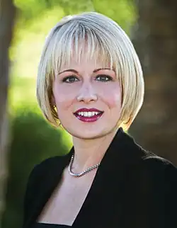 Sinema joined the Democratic Party in 2004.[29] That year, Sinema and David Lujan won the two seats for Arizona's 15th district, with 37 percent of the vote for Sinema and 34 percent for Lujan over incumbent representative Wally Straughn.[46] Sinema was reelected three times with over 30 percent of the vote.[47][48][49] In 2008, Sinema completed the Harvard University John F. Kennedy School of Government program for senior executives in state and local government as a David Bohnett LGBTQ Victory Institute Leadership Fellow. In 2009 and 2010, Sinema was an assistant Minority Leader for the Democratic Caucus of the Arizona House of Representatives.[50]