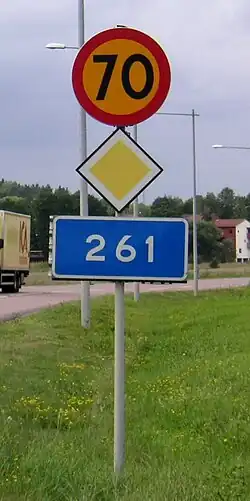 Swedish county roads (Länsväg) are roads with road numbers from 100 and upwards in Sweden. The Swedish county roads are public roads maintained by the Swedish Transport Administration (Swedish: Trafikverket). There is a total of 82,873 km (51,495 mi) of county roads in Sweden.