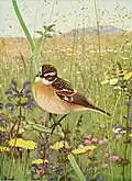 Robert's painting of a Whinchat (Saxicola rubetra; circa 1870) - Glass mural at Bern Historical Museum