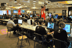 LAN parties have their own unique culture. Enthusiasts often show off computers with extravagant aftermarket cooling systems, LED lighting effects, multi-display setups, and custom-built cases, and many other enhancements.[11] Highly caffeinated drinks, termed energy drinks, are very popular in these events to improve concentration and stamina, since LAN parties often run into the early morning hours.[12] Large parties can last for several days with no scheduled breaks. Most of the time, sleep is compromised to play for extended periods of time lasting from night to morning. There are also designated rooms separated from the LAN party for sleep.