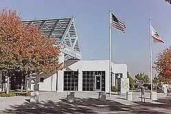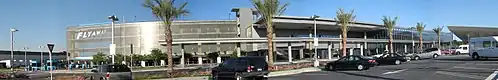 Van Nuys is the only FlyAway location with a dedicated passenger terminal, located at 7610 Woodley Avenue.[8] When the Van Nuys route launched on July 10, 1975, it featured a small terminal building.[9] In 2004, this was replaced by a larger US$34 million facility designed as a remote LAX terminal, with provisions for future airline ticketing and checked baggage services.[10] The renovation also added a 2,000-space parking garage, improved passenger drop-off facilities, and new landscaping, bringing total parking capacity to 3,020 spaces.[11]