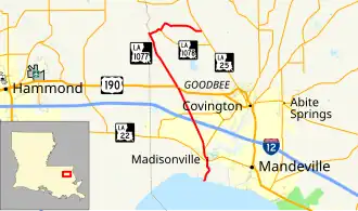 - ^ Louisiana Department of Transportation and Development, Office of Multimodal Planning (March 2, 2017). Right-Size the State Highway System: St. Tammany Parish (West Section) (PDF) (Map). Scale not given. Baton Rouge: Louisiana Department of Transportation and Development. Retrieved June 25, 2017.