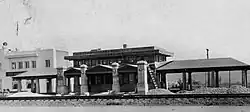 A railway stop known as La Ballona Station, along the Los Angeles and Independence Railway established 1874, was located on or near the site of what came to be known as Ivy Station, Culver Junction and Culver City station.[9] La Ballona Station was located at what is now Washington Boulevard, which circa 1883 was known as the "Monte Vista and La Ballona Station Road" and which extended Washington Street west from Los Angeles.[10] In 1886, the "surveyors of the Santa Monica Railroad have just crossed the S.P. track at Ballona, just where the county road crossed that track near La Ballona station. The terminus is finally fixed at South Santa Monica, near where the old Juan Bernard wharf is."[11] When the Palms Depot opened in 1887 it was noted to be between La Ballona Station and Santa Monica.[12] The name La Ballona Station was still in use as late as 1893;[13] the name Ivy Station first appears in print in 1889.[14]