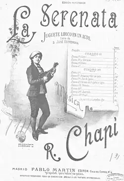 La serenata (The Serenade) is a one-act opera by Ruperto Chapí to a libretto by José Estremera. It was first performed on 5 November 1881 at the Teatro Apolo in Madrid.[1][2]