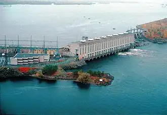 Lac des Chats (English: Lake of Cats), commonly known as Chats Lake,[1][2][3] is a lake on the Ottawa River which forms part of the boundary between the provinces of Ontario and Quebec (Canada).[4][5] It is formed by the Chats Falls Dam and serves as the reservoir for the Chats Falls Generating Station. Most of the lake is located in Pontiac Regional County Municipality, Quebec, and in Renfrew County, Ontario, but the easternmost part (near the dam) lies in Ottawa, Ontario and in Les Collines-de-l'Outaouais Regional County Municipality, Quebec.