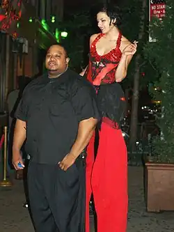 Anya Sapozhnikova with a doorman on Avenue B in New York City. | |