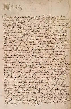 Jane received a humanist education from John Aylmer, speaking Latin and Greek from an early age, also studying Hebrew with Aylmer and Italian with Michelangelo Florio.[11] She was particularly fond, throughout her life, of writing letters in Latin and Greek.[12] Through the influence of her father and her tutors, she became a committed Protestant and also corresponded with the Zürich reformer Heinrich Bullinger.[13] Jane had a reputation as one of the most learned young women of her day.[14]