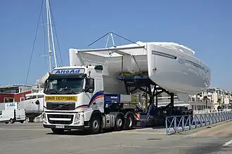 A Lagoon 450 F on a transporter, showing keel configuration | |