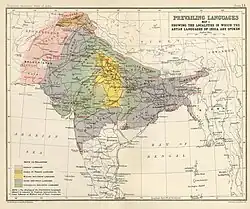 Lahna depicted on a linguistic map of India, showing the areas where Indo-Aryan languages are spoken, published in the 'Imperial Gazetteer of India' (Vol. XXVI, Atlas; 1931 revised edition; plate no. 13).