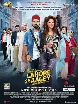 Lahore Se Aagey (Urdu: لاہور سے آگے; transl. Next to Lahore) is a 2016 Pakistani road-comedy romantic film directed by Wajahat Rauf, written by Yasir Hussain and Produced by Wajahat Rauf, Asfand Faruok, Salman Iqbal, and Jarjees Seja. The film is a spin-off to 2015 comedy film Karachi Se Lahore and second installment in Karachi Lahore film series. It features an all star cast, including Hussain (who was also part of the original film) along with Saba Qamar, Behroze Sabzwari, Abdullah Farhatullah, Mubashir Malik, Atiqa Odho, Rubina Ashraf and Noor ul Hasan. The film was released worldwide on 11 November 2016 under the production banner of Showcase Films.[2][3] Upon release, it received criticism from critics and became a moderate box office success.[4]