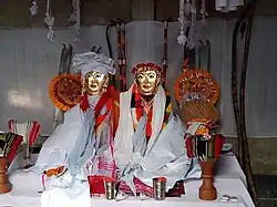 - Dancers and Musicians: Male dancers may perform alongside Maibis, often representing mythological or divine figures. Musicians play traditional instruments, including the pena and cymbals, to accompany the performances.[1]