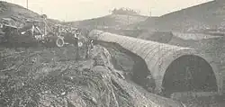 Various private entities recognized the hydroelectric potential of the Hiwassee in the early 1900s, although plans for dams were typically focused further downstream from the Chatuge site. TVA had considered an alternate site two miles downstream at Blair Creek.[4] After taking control of flood control operations in the valley in the 1930s, the Tennessee Valley Authority built Hiwassee Dam and carried out an extensive survey of the river (the waters of which were a major contributor to flooding in Chattanooga) in which they identified the Chatuge site. The outbreak of World War II in Europe brought an emergency demand for electricity, mainly to power aluminum production in East Tennessee, and TVA offered to meet this demand by building a series of dams on the Hiwassee and several other Tennessee River tributaries. The Chatuge Dam project (originally called the Hayesville project), along with several other dam projects, was authorized July 16, 1941. Work on the dam began the following day.[1]