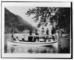 Fairholm was settled just prior to 1891 by W.V. Wilson and was named by Caroline Jones.[2] A post office, named "Fairholme", was there from 1891 to 1902; George Mitchell was its first postmaster.[3][4] Boat service on Lake Crescent connected Fairholm to Piedmont on the northeastern shore.[4]