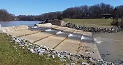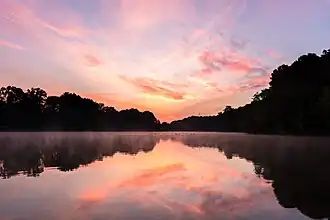 Lake Elkhorn is a 37-acre (150,000 m2)[2] reservoir located in the Owen Brown area of Columbia, Maryland. It is Columbia's third and largest lake.[3][4] Its main features are a small dam and a park with a picnic pavilion and a two-mile (3 km) walking path around the lake. The path was built in 1982[5] and is surrounded by a park and townhouses. The lake, which was built in 1974, is named for the Elkhorn branch of the Little Patuxent River. In 1969, Spiro Agnew proclaimed the arrival of the first Columbia based scientific firm, Hittman Associates that relocated for favorable lease rates from Howard Research and Development.[6][7] Hittman in turn was contracted by the EPA using Wilde Lake as an example to recommend reuse of storm water runoff from all of Columbia's reservoir systems for residential drinking water to save on development costs.[8][9] The lake is overseen by the Columbia Association.