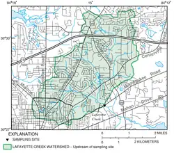 Of the four major lake basins in Leon County - Lake Jackson, Lake Iamonia, Lake Miccosukee, and Lake Lafayette - the Lake Lafayette basin is the most intensively developed;[1] it is also considered the most modified lake basin in all of northern Florida, since it is no longer functioning in a natural fashion due to human effects.[1] Lafayette Basin once functioned as a temporary lake, much like Lake Miccosukee and Lake Iamonia where water was frequently exchanged between the Lake Basin, the Floridan Aquifer (sink holes) and the St. Marks River through a series of connecting sloughs.