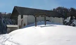 Not far from the water’s edge stands a small sanctuary, the Madonna del Lago Nero, established between 1747 and 1840 and rebuilt in 1854 at the behest of Bousson’s residents.[1]