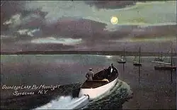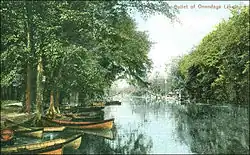 Onondaga Lake also became a popular resort area.[23] By the late 19th century, its shoreline was dotted with hotels, restaurants, and amusement parks.[19] The area was so popular that people traveled by railroad from as far as New York City to visit the lake. Fish from the lake were harvested and served in restaurants across the state.[24][6]