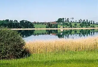 Pfäffikersee (or Lake Pfäffikon) is a lake in the canton of Zürich, Switzerland, near the town of Pfäffikon. It is 2.5 km long and 1.3 km wide at the middle. The lake was created in the last ice age when a moraine blocked off the ability for the lake to empty north towards Winterthur. There is also a hiking trail around the lake that people often bike and walk on, and the area is considered protected lands, among them the Robenhauser Ried and the prehistoric settlement Wetzikon–Robenhausen, discovered and researched by Jakob Messikommer (1828–1917), which became a serial site of the UNESCO World Heritage Site Prehistoric pile dwellings around the Alps. In Roman era, along Pfäffikersee there was a Roman road from the vicus Centum Prata (Kempraten) on Obersee–Lake Zürich via Vitudurum (Oberwinterthur) to Tasgetium (Eschenz) to the Rhine. To secure this important transport route, the Irgenhausen Castrum was built.
