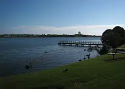 Close to the Takapuna city centre, the lake is popular not only with wild birds (such as shags) but with picnickers, paddlers, kayakers,[11] rowers,[12] yachtsmen, divers, and windsurfers (lessons have been given on the lake).[13] Free divers (no tanks) have practiced in the lake.[14] College rowing crews use it.[15] There have been boating races.[16] and the Pupuke Boating Club operates there.[16] Takapuna Boating Club hosts regattas.[17]