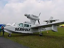 The Seawolf version was designed for light maritime patrol duties and features a hardpoint under each wing to carry external stores, including bombs, rocket pods, gun pods, or rescue equipment.[3] Provision for a radar unit was made on the forward end of the engine pod.[3][4] The Seafury includes improved anti-corrosion measures and a hardened interior to improve its serviceability in saltwater environments, as well as a storage compartment carrying survival gear.[5]