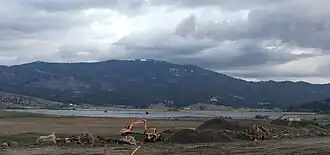 The area known as the Saltese Flats, was once a Lake (even larger than the nearby Liberty Lake), but was drained by Peter Morrison in the 1890s so he could grow Timothy hay on the dry lakebed. Starting in 1894, Morrison used hired laborers and horses to dig 10 miles (16 km) of drainage canals diverting water into Saltese Creek. Within weeks of the canals being finished, the lake had completely drained. The creek, which originally ended at the lake, now carries water an additional 2.5 miles (4.0 km) before terminating at what is now known as Shelley Lake.[4] The Lake—originally spelled "Seltice" Lake—was named after Chief Andrew Seltice of the Coeur d'Alene tribe, who lived in a home on the west side of the lake.[5]