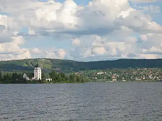 Siljan, in Dalarna in central Sweden, is Sweden's seventh largest lake. The cumulative area of Siljan and the adjacent, smaller lakes Orsasjön and Insjön is 354 km2 (137 sq mi). Siljan reaches a maximum depth of 134 m (440 ft), and its surface is situated 161 m (528 ft) above sea level. This renders the lowest point of the basin at 27 metres (89 ft) above sea level. The largest town on its shore is Mora.