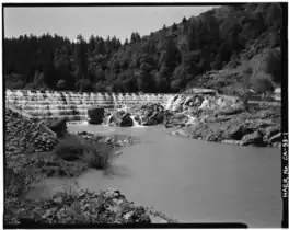 The reservoir is formed by the Cape Horn Dam, also known as Van Arsdale Dam,[1] which impounds the waters of the Eel River. A portion of its water (154,000 acre-feet (190,000,000 m3) per year, on average) is diverted southward through an aqueduct tunnel to a powerhouse in Potter Valley, where it drives a turbine capable of generating up to 9.4 MW of electric power. Diverted water then descends by means of the Powerhouse Canal and East Fork Russian River to Lake Mendocino, which supplies the Sonoma County Water Agency. The non-diverted flow continues down the Eel to its mouth at the Pacific Ocean near Fortuna.[3]