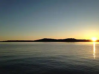 Bigwin Island is the largest island in the lake; other islands include Burnt Island, Fairview Island, Langmaids Island, Pancake Island, Raynor Island, Rock Island, Haystack Island, Millichamp Island, Reuben Island, Crown Island and Peanut Island. The irregular shape of the lake is defined by many bays such as Rabbit's Bay, Burnt Island Bay, Whitehouse Bay, Montgomery Bay, Portage Bay, Haystack Bay, Ten Mile Bay, Dwight Bay, Trading Bay and Murky Bay.[3][4]
