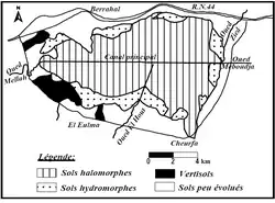The soils of Fetzara Lake have been the subject of several studies for agricultural development, all of which revealed any significant constraints on their use such as salinization and hydromorphy [1, 2, 3, and 7]. These studies have helped to classify the soils into four classes: the less evolved soils of non-climate origin resulting from erosion, colluvial and alluvial deposits, the vertisols; alluvial deposits with high clay content as the drought comes easy to cracking; hydromorphic soils and halomorphic soils with high salinity.