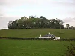 David Parker Forrest died on 11 January 1934 and is recorded on the impressive family memorial in Stewarton cemetery. The farm is marked on the 1858 OS with a milestone (Irvine 5+3⁄4 mi, 9.3 km and Stewarton 1 mi, 1.6 km) opposite its entrance, but now buried. Close to the farm in a field near the 'cut' in the main road, is a large depression with a mound of earth, which is said locally to be the site of a meteorite strike. The 1897 OS of 25-inches-to-the-mile and other more recent OS maps show no pond or mound, backing up this belief. Drains are shown on the 1789 Montgomerie Estate map and a small bog is indicated in the corner of the field close to the toll road.[28] When new sheds were being constructed circa 1950 a stone axe head was found, now preserved in the Dick Institute.[25]