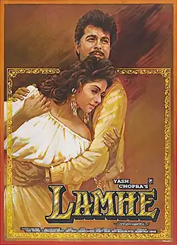 Lamhe (Moments) is a 1991 Indian musical romantic drama directed and produced by Yash Chopra and written by Honey Irani and Rahi Masoom Raza. The film stars Sridevi (in a dual role as both mother and daughter) and Anil Kapoor in lead roles, along with Waheeda Rehman, Anupam Kher, Deepak Malhotra, and Dippy Sagoo in pivotal supporting roles. The film marks the second and final collaboration between Sridevi and Chopra after Chandni (1989).