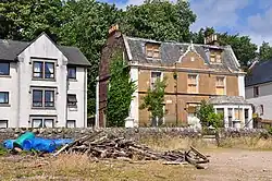The Lookout was an early to mid-19th-century classical villa with prominent corner pilasters and Tudor Jacobean details, located on the main road close to the shore. It was marked as 'Bank' on Ordnance Survey maps of 1868, 1897 and 1924. In October 2002, the North Ayrshire Council turned down an application by John Thomson Construction Limited (from Lamlash) to have the building demolished. It was argued that demolition would be contrary to national policy and to the Isle of Arran Local Plan as it would have an adverse impact on the Lamlash Conservation Area. The Council also considered that it had not been satisfactorily demonstrated that the Lookout could not be restored and brought back into use as advised by Historic Scotland.[23]