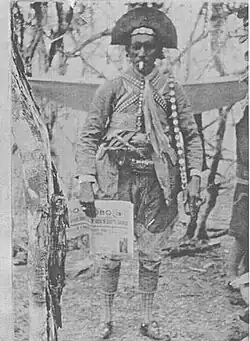 A typical example of Lampião's activities, and his ambivalent nature, is his descent on the small town of Queimadas in Bahia, which took place in December 1929. His band entered the town, and immediately shut down the telegraph office to stop news from spreading. The seven policemen in the town and their sergeant were shut in the jail, whilst the jail's previous occupants were set free. The wealthiest citizens of the town were then levied for a forced monetary contribution. The bandits, however, paid for items, including soap and perfume, taken from the town's shops. The seven policemen were summarily executed by shots to the head, but their sergeant was left unharmed as he was liked by the townspeople. In the evening Lampião organised a baile, a dance for the townspeople and his cangaceiros. He also ordered a cinema show to be presented. The bandits were under strict instructions not to molest the local young women, and such was Lampião's authority that none were. The bandits left the town at 4:00 in the morning; Lampião rode a borrowed mule, which he later duly returned to its owner.[17] On one occasion he attacked a large town, Mossoró, in the state of Rio Grande do Norte, in June 1927. The bandits began their assault on the town to the sound of a bugle; when advancing they shouted vivas and sang their special song, Mulher Rendeira (The Lacemaker). However, the inhabitants had time to organise a defence, and 300 armed townsmen drove off Lampião's 60 cangaceiros.[18]