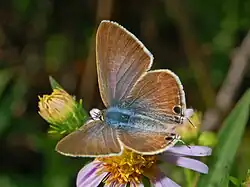Lampides boeticus, the pea blue,[2][3] or long-tailed blue,[3] is a small butterfly that belongs to the lycaenids or gossamer-winged family.[4]