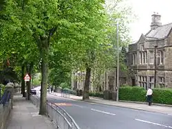 This building (now known as Old School House), which stands on the north side of East Road, was designed by the local architects Sharpe and Paley at a cost of £8,000 (equivalent to £1,100,000 in 2023).[3][4][5] The foundation stone was laid on 5 May 1851 by James Prince Lee, the Bishop of Manchester.[6] The title "Royal" was granted by Queen Victoria in the same year.[4] This building is recorded in the National Heritage List for England as a designated Grade II listed building.[7]