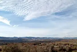 Sinks Canyon in the Wind River Range is close to Lander.[21] Elk migrate out of the Wind River Range into the lowlands near Lander, arriving in early winter and frequently staying at least through calving season in the spring.[22] The town is located in the Wind River Basin