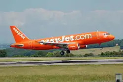 An easyJet Airbus A320 flares at Bristol Airport, England