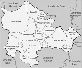 Freudenstadt is a Landkreis (district) in the middle of Baden-Württemberg, Germany. Neighboring districts are (from north clockwise) Rastatt, Calw, Tübingen, Zollernalbkreis, Rottweil and the Ortenaukreis.