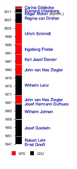 | Josef Gockeln | CDU | 04/19/1947 | 12/06/1958 |