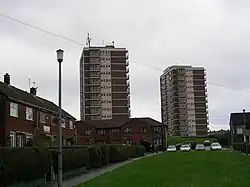 ![]() High-rise accommodation in Langley. The flats pictured here have since been demolished. | |